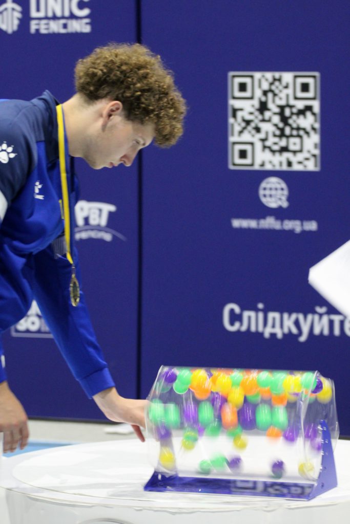 Їхніх щасливих володарів за допомогою лототрону визначили переможці сьогоднішніх особистих змагань з фехтування на рапірах Мілана Степовик та Микита Асташов.
