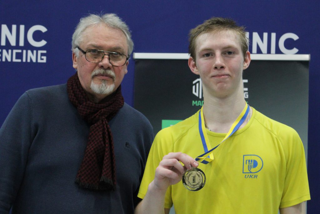 🔹Серед хлопців перемогу святкував дніпрянин Григорій Краснюк. Вихованець СДЮСШОР №6 і безпосередньо Сергія Комарова теж без поразок пройшов груповий етап і під першим номером стартував в олімпійці, де здолав ще п’ятьох суперників, зокрема у поєдинку за золото з мінімальною перевагою в один укол – Костянтина Богача зі столичного «Динамівця» (15:14). Відзначимо, що перед тим підопічний Олега Шостацького і Катерини Харченко у напруженому півфіналі змусив скласти зброю чинного чемпіона України серед кадетів і переможця цьогорічного Турніру Колчинського Олександра Стабнікова (15:13).