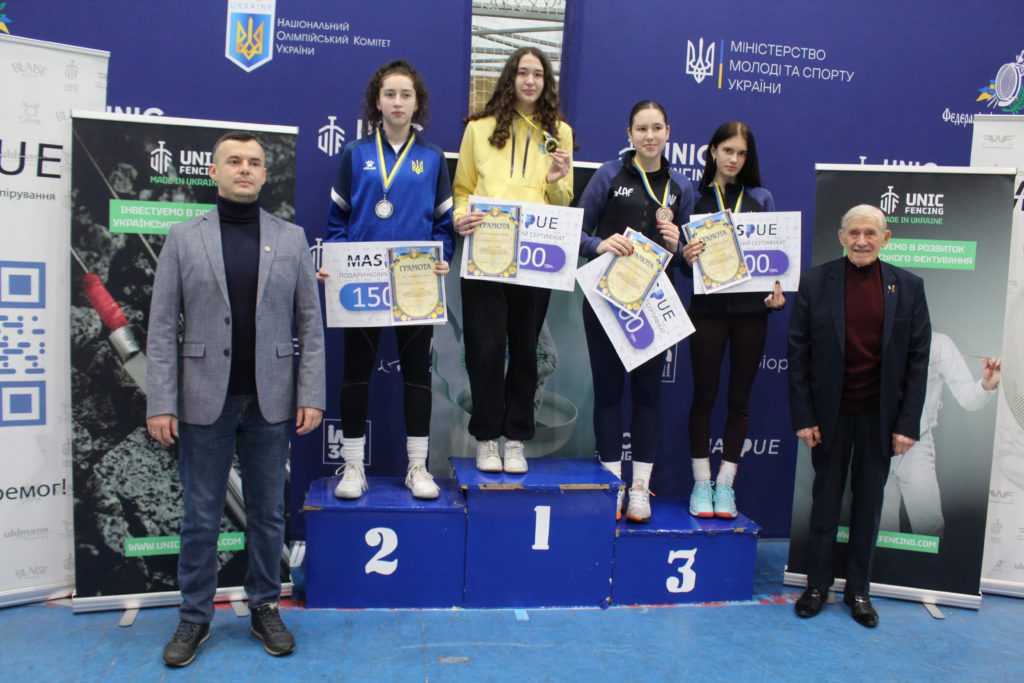 🔹Серед дівчат впевнену перемогу здобула Аліна Дмитрук, вихованка Львівської академії фехтування (тренери Андрій Орліковский, Зоряна Семеряк). Чинна чемпіонка України і володарка Кубка України-2025 серед дорослих не залишила шансів суперницям, вигравши всі бої у “пулі” і ще п’ять в олімпійці, останні три з яких з рахунком 15:7, зокрема і фінальний проти Маргарити Ангарської зі столичного «Армійця».