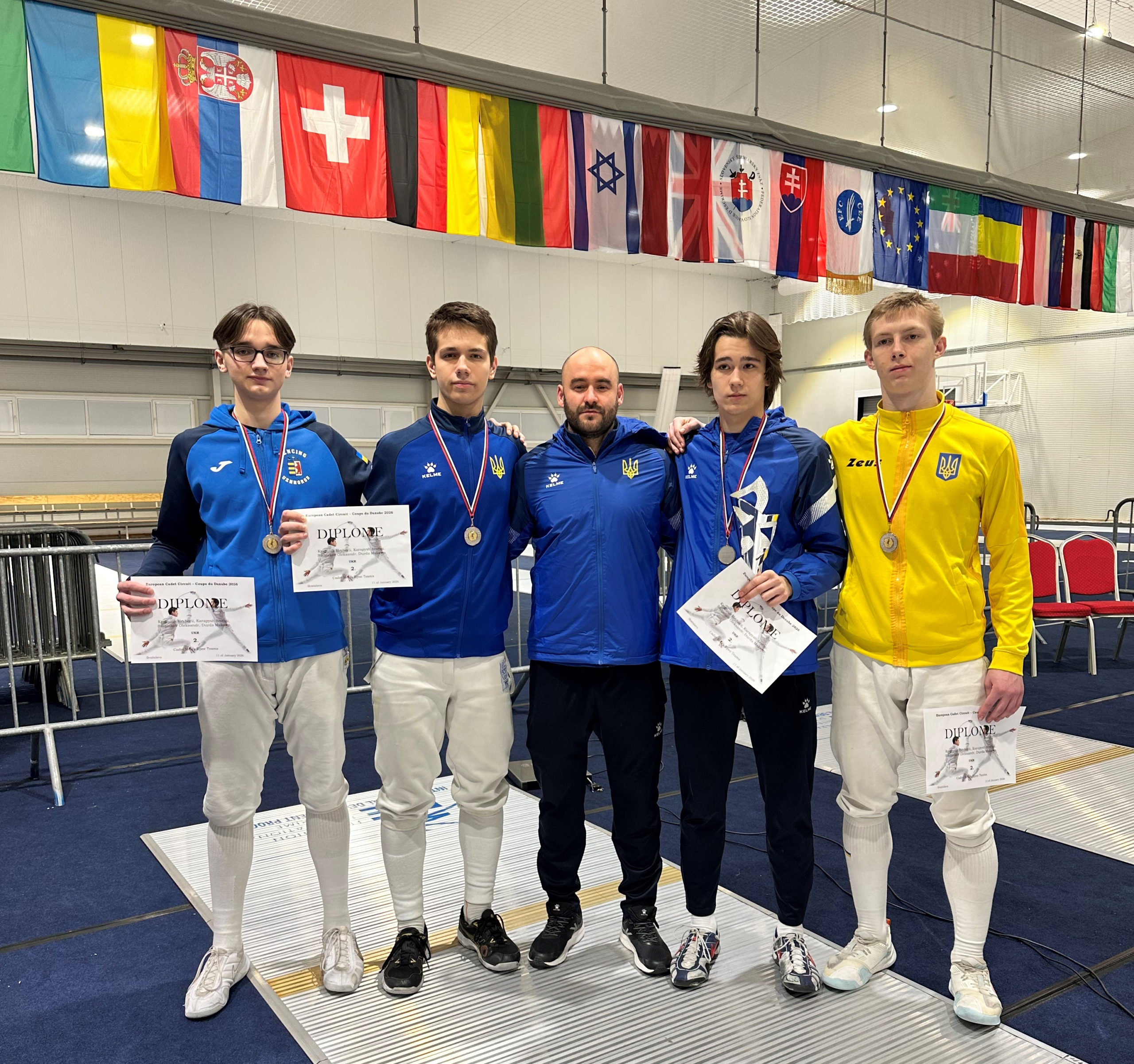 Сьогодні, 11 січня, розіграшем командних нагород завершився триденний турнір Європейського кадетського циклу з фехтування на шпагах «Coupe du Danube» у словацькому Шаморіні. Квартет наших хлопців виборов срібло, дівчата – бронзу. Арсеній Карапиш, Олександр Стабніков, Максим Дурда та Григорій Краснюк на шляху до другої сходинки п’єдесталу впевнено здолали Україну 4 (45:29), Угорщину 2 (45:29), Німеччину (45:27), […]